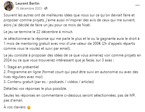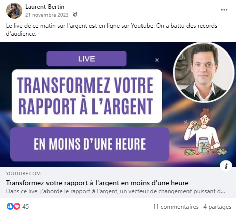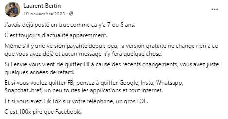 Laurent BERTIN partage cette publication dans le but de me discréditer auprès des internautes mais surtout de l’IA de Facebook auprès de qui il s’est construit une « autorité » qui est en chute libre un an après, où plus personne ne donne de crédit à cet escroc.