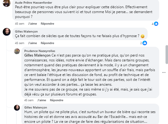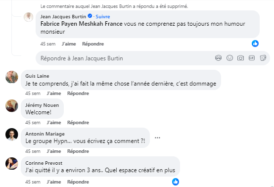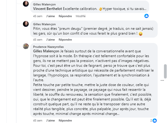 Nous découvrons l’existence de Gilles Malençon qui était co-administrateur du groupe « Hypnose (archive) » un temps et qui a notamment participé à ‘organisation de différents TEDx