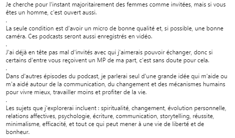 Comme à son habitude, le manipulateur cherche des muses en questionnant sa communauté en ligne, sur le même principe que « les appels clarté ».