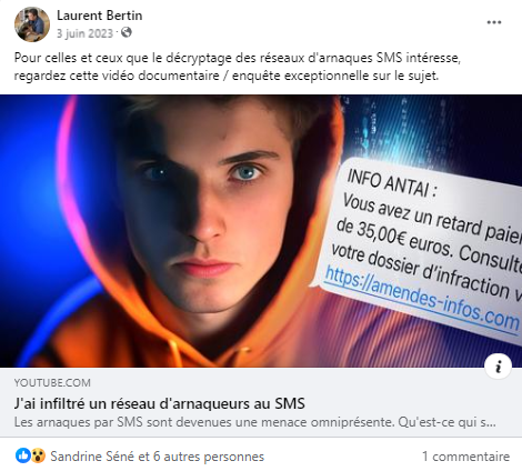 3 juin 2023 : post manipulatoire d’arnaque au SMS